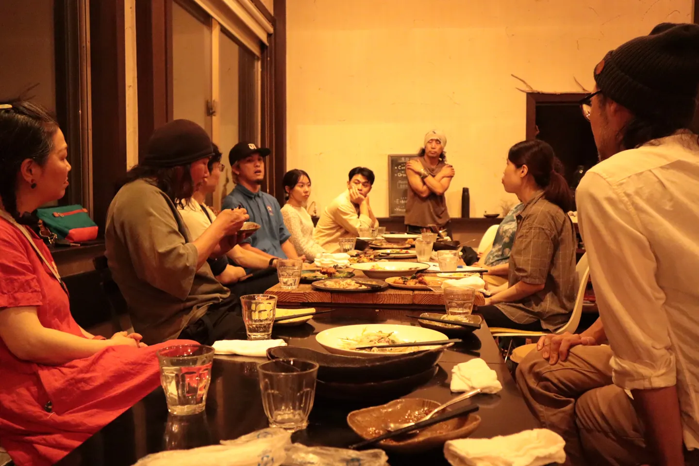この日は三豊へ移住してアーティスト活動などをされている宮城慎梧さんにもご協力いただき、「アートとデザインの団欒」を開催していただきました。香川県中から約10名もの方が集まり、ついつい長話に。でも、場所を見るだけではなく地元の人に話を聞く視察ができ、ゆころさんの三豊市に対する解像度もぐっと上がったことでしょう。