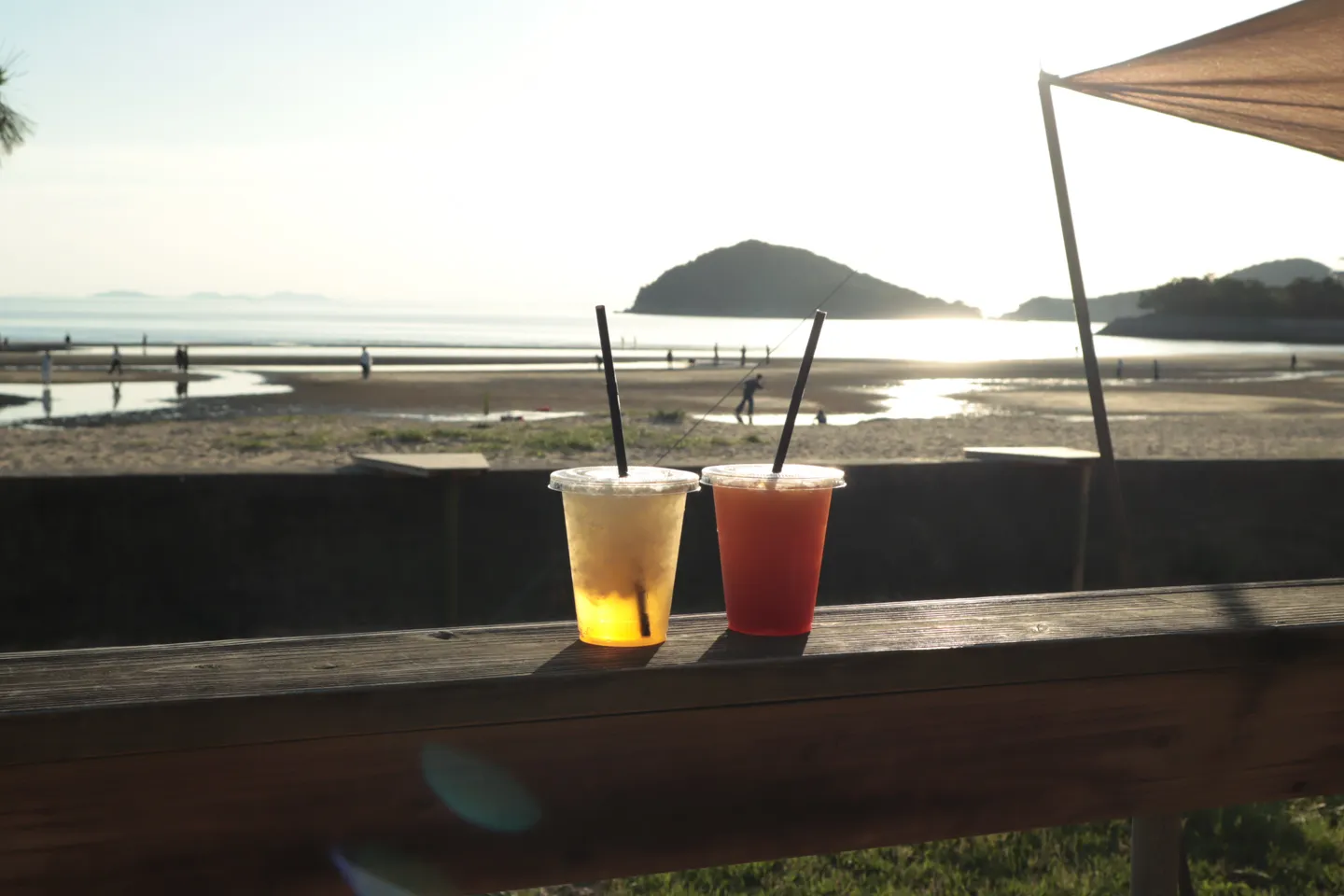 ちょうど干潮時だったので、砂浜の先まで行ってみました。また、「父母ヶ浜PORT」で地元のフルーツを使ったオリジナルドリンクをおいしくいただきました。