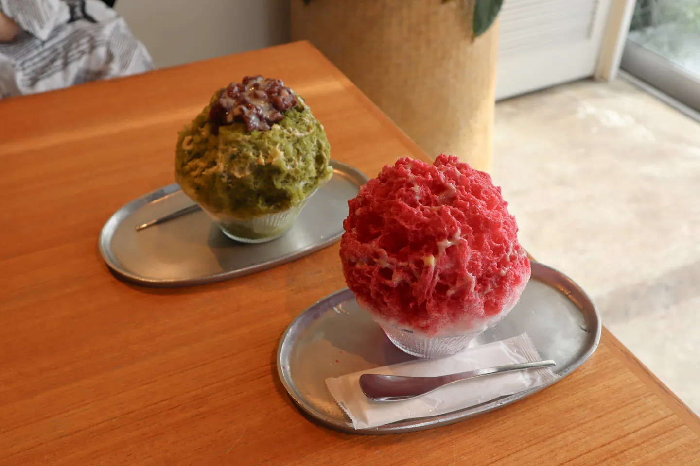 さきほど訪問した高瀬茶を使った「高瀬緑茶」と、財田町で栽培された果実を使った「ボイセンベリー」をいただきました。それぞれの風味がまっすぐに味わえ、最後まで美味しいかき氷でした。