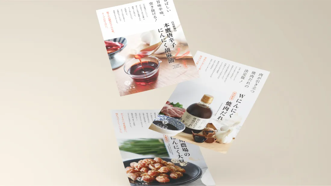 情報の整理、写真撮影、コピーライティング、デザイン、印刷まで、すべてお任せいただけます。目的やご予算に応じて、適切な媒体や素材、表現方法をご提案します。