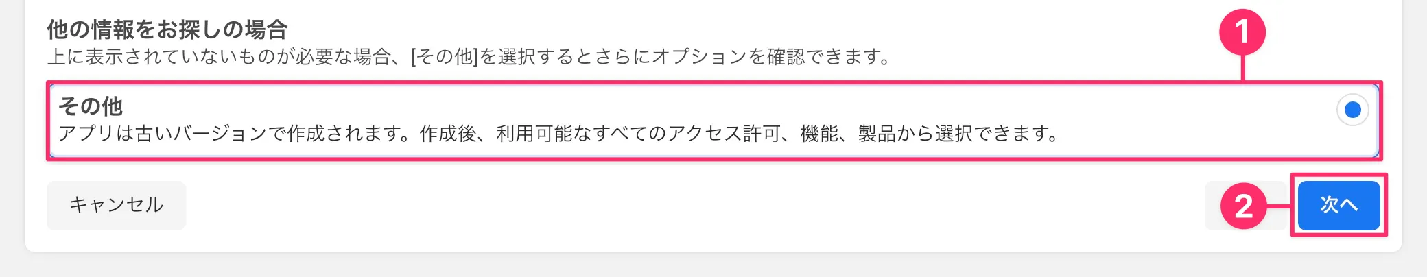 - 「ユースケースを追加」では「❶ その他」を選択し、「❷ 次へ」をクリック