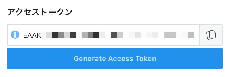 生成されたトークンは1時間で期限切れになる短期トークンです。短期トークンは実務で利用するには有効期間が短すぎます。そのため、次にこの短期トークンを長期トークンに変換します。