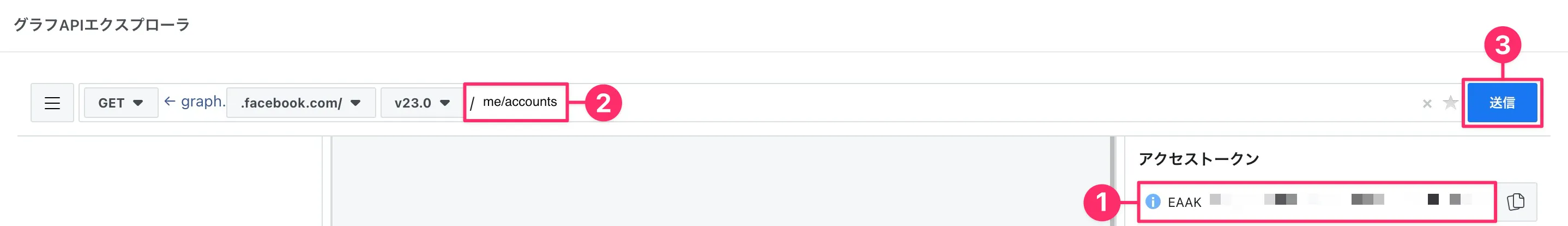 me/accountsを入力する(❷) - 「❸ 送信」をクリック
